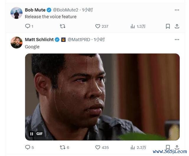 OpenAI官宣测试搜索功能后,社交媒体上,有网友配了一名男子流汗的动图,比喻谷歌现在要急得流汗了,这条成为超过2万高赞的热门评论。还有一条点赞过万的网友评论呼吁OpenAI,发布AI语音功能。