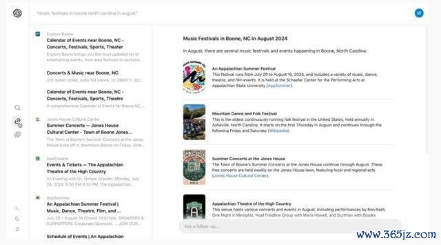 OpenAI官网介绍,SearchGPT的宗旨是,通过在搜索中突出显示引用内容和链接,帮助用户与发行商建立联系。SearchGPT的响应中有清晰、内联、有命名的归属和链接,因此用户将知道信息来自何处,并且可以在带有源链接的侧边栏中快速获取更多搜寻结果。
